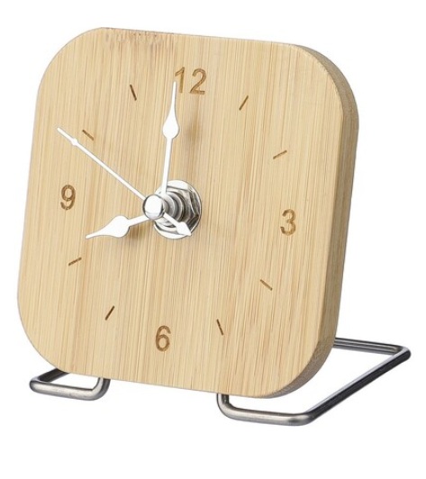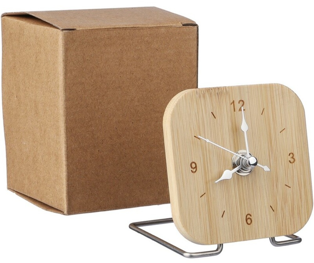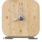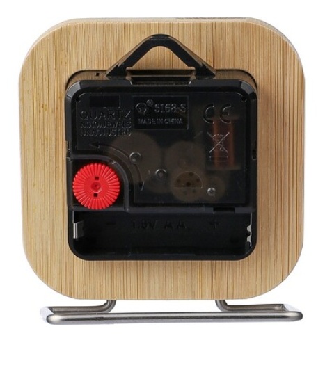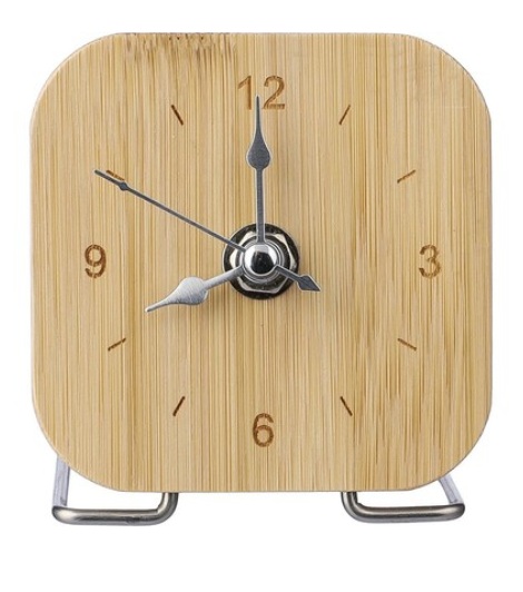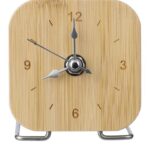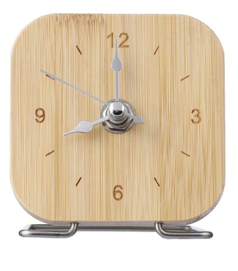 Bambusowy zegar na biurko, zawiera baterię, produkt wykonany z bambusa, metalu i plastiku