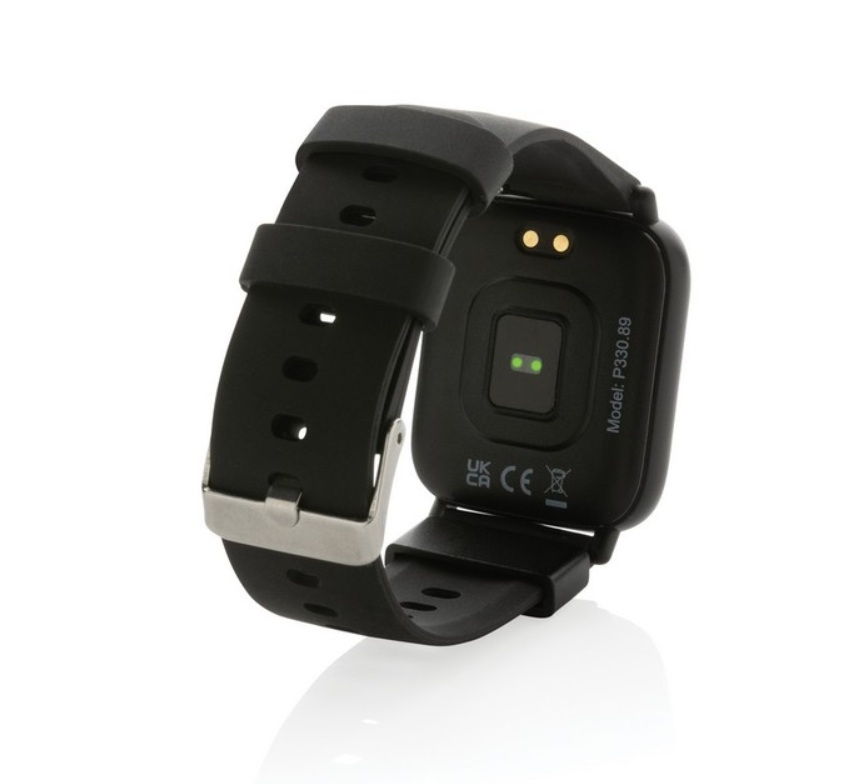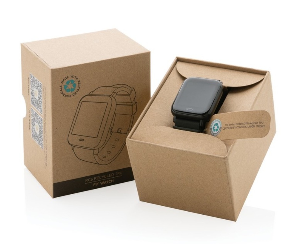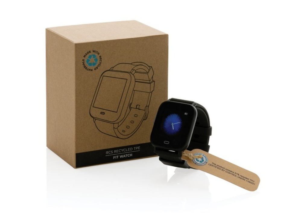 Monitor aktywności Fit Watch 1,3″,BT 5.0, wykonany z ABS z recyklingu, pasek wykonany z TPE z recyklingu, posiada certyfikat RCS (Recycled Claim Standard), całkowita zawartość materiału z recyklingu obliczona w oparciu o wagę całkowitą przedmiotu: 31%, funkcje odbierania połączeń, licznika kroków, śledzenia tętna, mierzenia ciśnienia krwi, pomiar czasu snu, kalendarz, powiadomienia z aplikacji, wodoodporność i pyłoszczelność IPX 67, kompatybilny z Androidem 4.4 oraz IOS 8.0 lub nowszymi, czas czuwania do 15 dni, czas pracy do 5 dni, ładowarka klipsowa w zestawie, w pudełku kraftowym z certyfikatem FSC® mix, nie zawiera PVC, ślad węglowy produktu: 0,73 kg CO2