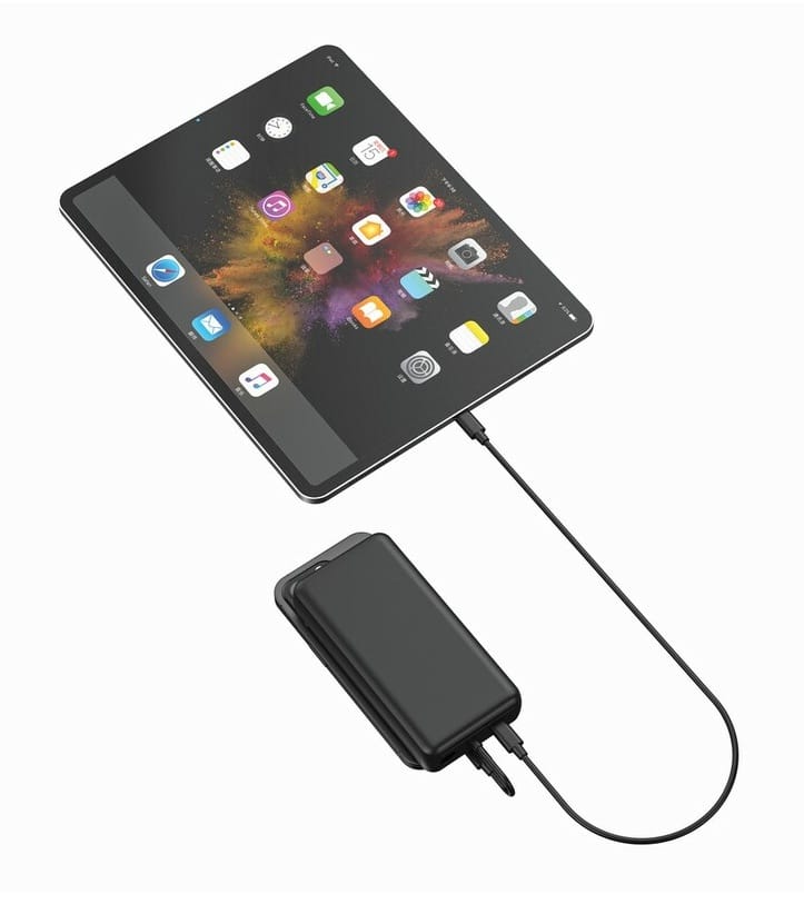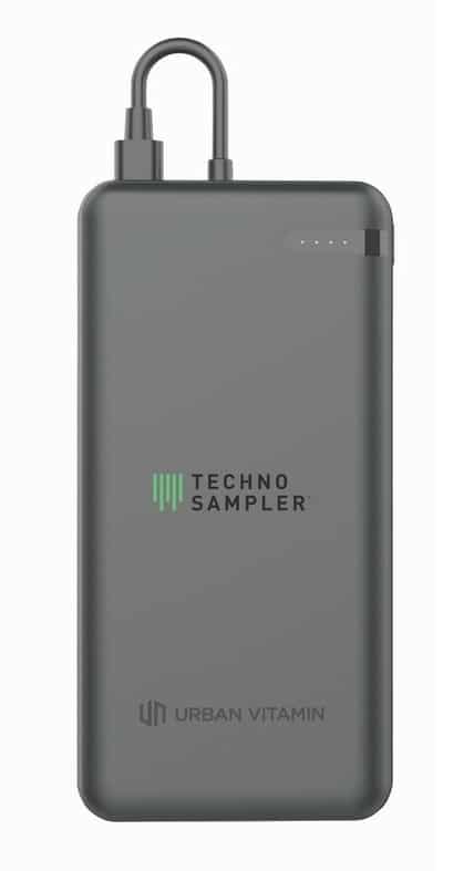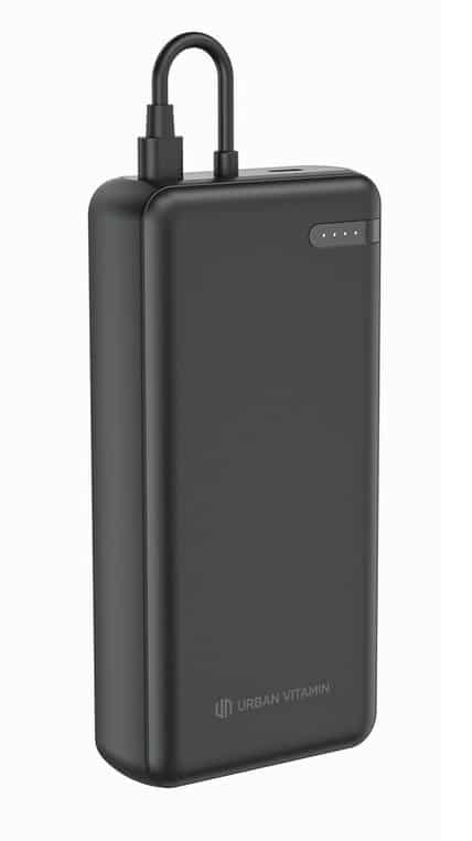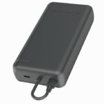 Power bank 20000 mAh, zintegrowany kabel USB-C, szybkie ładowanie do 20W, wyjścia USB i USB-C, wykonany z ABS i PC pochodzących z recyklingu, całkowita zawartość materiałów z recyklingu obliczona w oparciu o wagę całkowitą przedmiotu: 20%, P322.8801